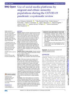 Title: | Use of social media platforms by migrant and ethnic minority populations during the COVID-19 pandemic: a systematic review |