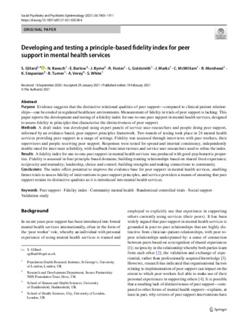 Title: | Developing and testing a principle-based fidelity index for peer support in mental health services |