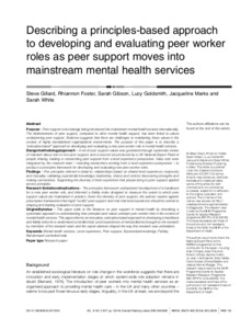 Title: | Describing a principles-based approach to developing and evaluating peer worker roles as peer support moves into mainstream mental health services |