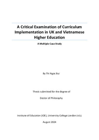 Title: | A Critical Examination of Curriculum Implementation in UK and Vietnamese Higher Education: A Multiple Case Study |