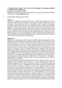This chapter is based on an anthropological study of a global, multidisciplinary network of researchers (MACONDO) that use drone technologies to support malaria vector control programmes. The purpose of this study was to investigate the ways in which drone technology for malaria control is deployed by various researchers and the implications the different applications had for the way malaria was conceived of and dealt with. It reports two key findings. First, that drone technologies reflected and mediated a shift towards thinking about malaria as multiple and emergent within heterogenous landscapes. Second, that in the hands of various researchers, malaria ‘environments’ were rendered ‘partial’ and ‘particular’ and risk equally fragmented. As a result, we highlight the ‘patchy’ character of malaria landscapes that drone technologies mediate and the challenge this poses to global health narratives based on ‘concrete’ and ‘neutral’ scientific ways of knowing.