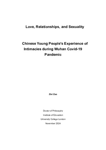 Title: | Love, Relationships, and Sexuality: Chinese young people's Experience of Intimacies during Wuhan Covid-19 Pandemic |