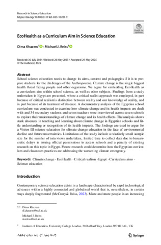 Reiss_Khazem Reiss 2025 RISE EcoHealth as a Curriculum Aim in Science Education.pdf - Published Version Download (938kB) | Preview |