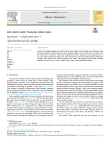 Workers’ job mobility decisions are related to firms’ wage policies but also depend on tax schedules. Using Norwegian population-wide administrative linked employer-employee data for 2010–2019, we study how the job-to-job turnover of employees is affected by marginal taxes and firms’ pay policies, thus drawing inferences on job search behaviour. By paying higher wages, job-to-job separation rates drop, but this negative relationship is weakened when income taxes increase, consistent with higher taxes reducing search activity. However, consistent with theory, the tax effect is smaller where workers receive performance bonuses.