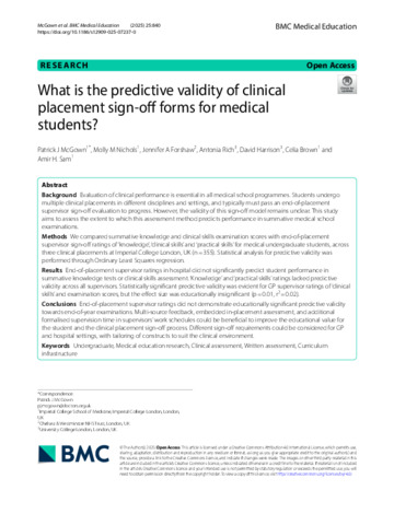 | Title: | What is the predictive validity of clinical placement sign-off forms for medical students? |