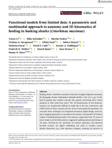 | Title: | Functional models from limited data: A parametric and multimodal approach to anatomy and 3D kinematics of feeding in basking sharks (Cetorhinus maximus) |