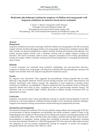Title: | Respiratory physiotherapy training for caregivers of children and young people with long-term ventilation: an interview-based service evaluation |