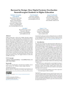 Burnout by Design_ How Digital Systems Overburden Neurodivergent Students in Higher Education.pdf - Accepted Version Download (935kB) | Preview |
