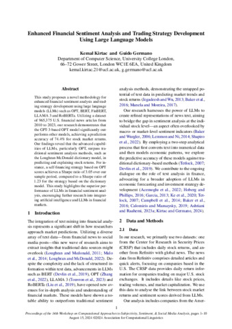 Title: | Enhanced Financial Sentiment Analysis and Trading Strategy Development Using Large Language Models |