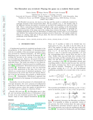 Title: | Ehrenfest urn revisited: Playing the game on a realistic fluid model |