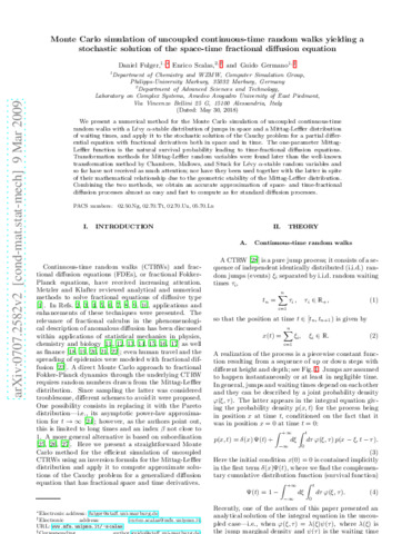 Title: | Monte Carlo simulation of uncoupled continuous-time random walks yielding a stochastic solution of the space-time fractional diffusion equation |