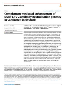 Complement-mediated enhancement of SARS-CoV-2 antibody neutralisation potency in vaccinated individuals.pdf - Published Version Download (3MB) | Preview |