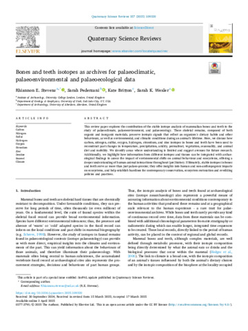 Title: | Bones and teeth isotopes as archives for palaeoclimatic, palaeoenvironmental and palaeoecological data |