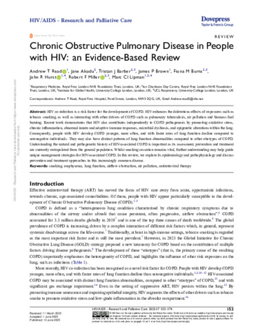 Title: | Chronic Obstructive Pulmonary Disease in People with HIV: an Evidence-Based Review |