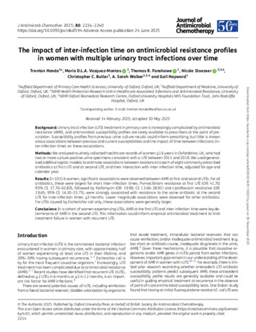 Walker_The impact of inter-infection time on antimicrobial resistance profiles in women with multiple urinary tract infections over time_VoR.pdf Download (631kB) | Preview |