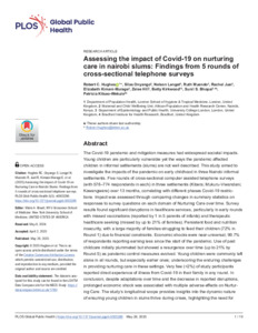 Assessing the impact of Covid-19 on nurturing care in nairobi slums Findings from 5 rounds of cross-sectional telephone surv.pdf - Accepted Version Download (1MB) | Preview |