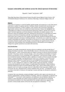 Synapse vulnerability and resilience across the clinical spectrum of dementias.