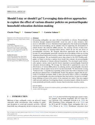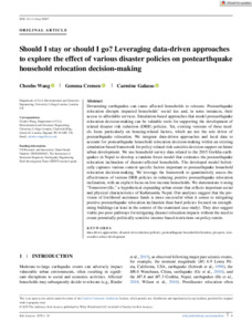 | Title: | Should I stay or should I go? Leveraging data-driven approaches to explore the effect of various disaster policies on postearthquake household relocation decision-making |