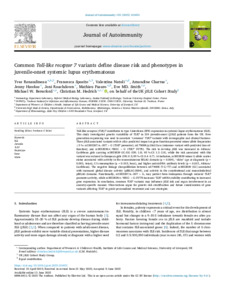 Title: | Common Toll-like receptor 7 variants define disease risk and phenotypes in juvenile-onset systemic lupus erythematosus |