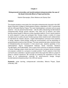 Title: | Entrepreneurial universities and transformational entrepreneurship: the case of the Zayed University- Minerva Project partnership |