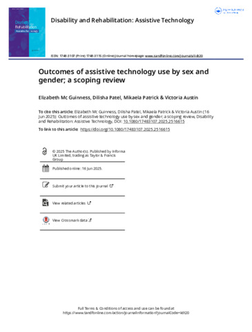 Title: | Outcomes of assistive technology use by sex and gender; a scoping review |