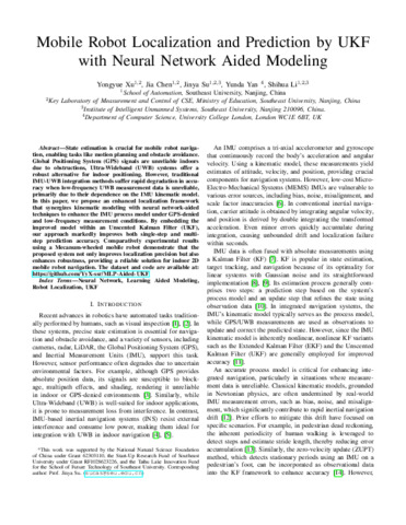 | Title: | Mobile Robot Localization and Prediction by UKF with Neural Network Aided Modeling |