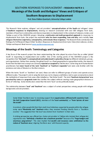 Title: | Meanings of the South and Refugees’ Views and Critiques of Southern Responses to Displacement: Research Note #1 |