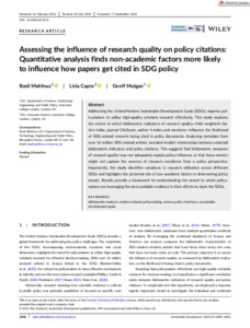| Title: | Assessing the influence of research quality on policy citations: Quantitative analysis finds non-academic factors more likely to influence how papers get cited in SDG policy |