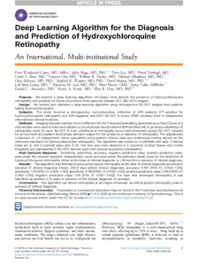 Deep-learning algorithm for the diagnosis and prediction of hydroxychloroquine retinopathy: An International, multi-institutional study.