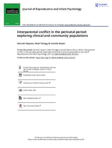 | Title: | Interparental conflict in the perinatal period: exploring clinical and community populations |