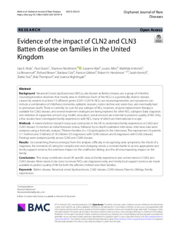 | Title: | Evidence of the impact of CLN2 and CLN3 Batten disease on families in the United Kingdom |