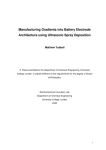 Title: | Manufacturing Gradients into Battery Electrode Architecture using Ultrasonic Spray Deposition |