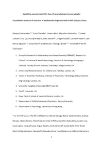 Title: | Upsetting experiences in the lives of neurodivergent young people: A qualitative analysis of accounts of adolescents diagnosed with ADHD and/or autism |