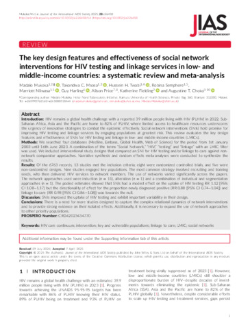 The key design features and effectiveness of social network interventions for HIV testing and linkage services in low- and middle-income countries: a systematic review and meta-analysis.