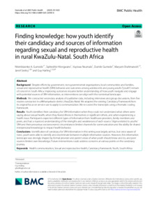 | Title: | Finding knowledge: how youth identify their candidacy and sources of information regarding sexual and reproductive health in rural KwaZulu-Natal. South Africa |