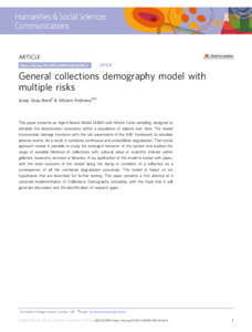This paper presents an Agent-Based Model (ABM) with Monte Carlo sampling, designed to simulate the deterioration processes within a population of objects over time. The model incorporates damage functions with the risk parameters of the ABC framework to simulate adverse events. As a result, it combines continuous and probabilistic degradation. This hybrid approach makes it possible to study the emergent behavior of the system and explore the range of possible lifetimes of collections with cultural value or scientific interest within galleries, museums, archives or libraries. A toy application of the model is tested with paper, with the main outcome of the model being the decay in condition of a collection as a consequence of all the combined degradation processes. The model is based on six hypotheses that are described for further testing. This paper presents a first attempt at a universal implementation of Collections Demography principles, with the hope that it will generate discussion and the identification of research gaps.