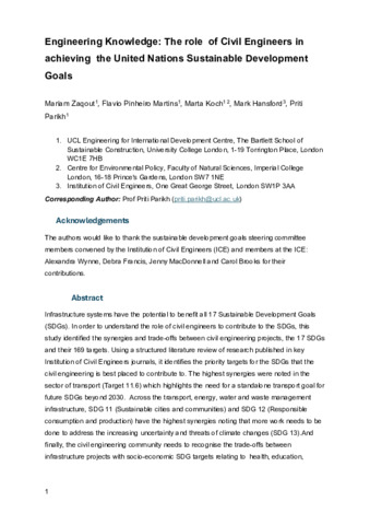 Engineering knowledge: the Institution of Civil Engineers and the UN Sustainable Development Goals.