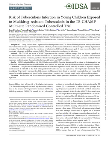 | Title: | Risk of Tuberculosis Infection in Young Children Exposed to Multidrug-resistant Tuberculosis in the TB-CHAMP Multi-site Randomized Controlled Trial |
