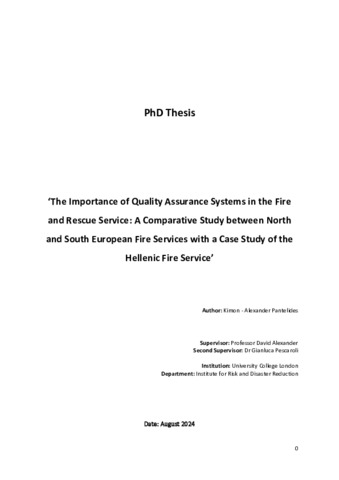 | Title: | The Importance of Quality Assurance Systems in the Fire and Rescue Service: A Comparative Study between North and South European Fire Services with a Case Study of the Hellenic Fire Service |
