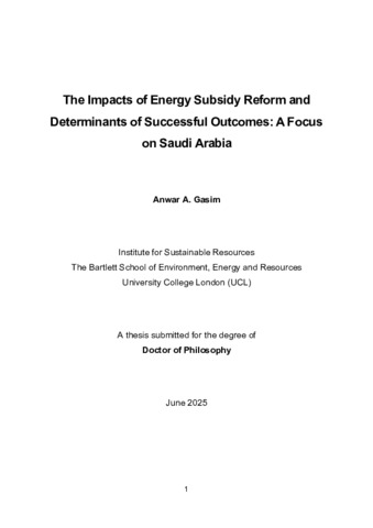 Title: | The impacts of energy subsidy reform and determinants of successful outcomes: a focus on Saudi Arabia |
