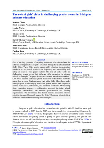 | Title: | The role of girls’ clubs in challenging gender norms in Ethiopian primary education |