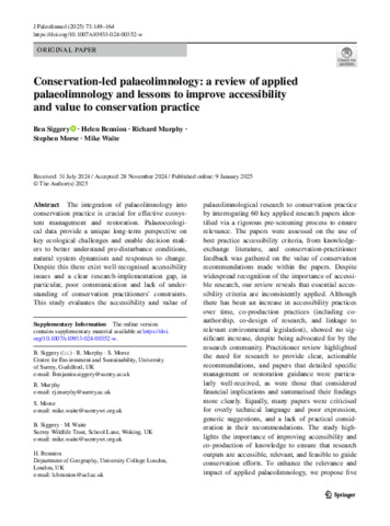 Title: | Conservation-led palaeolimnology: a review of applied palaeolimnology and lessons to improve accessibility and value to conservation practice |