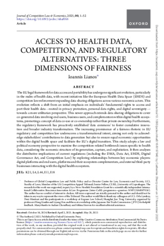 The EU legal framework for data access and portability has undergone significant evolution, particularly in the realm odata, with recent initiatives like the European Health Data Space (EHDS) and competition law enforcement expanding data-sharing obligations across various economic actors. This evolution reflects a shift from an initial emphasis on individuals’ fundamental rights to access and port their health data—rooted in privacy protection, personal data rights, and digital sovereignty—towards a more utilitarian perspective. This newer approach extends data-sharing obligations to cover co-generated data involving end-users, business users, and complementors within digital health ecosystems, promoting a concept of data co-use or co-ownership rather than private ownership. Furthermore, the regulatory framework has proactively established ‘data commons’ to foster cumulative innovation and broader industry transformation. The increasing prominence of a fairness rhetoric in EU regulatory and competition law underscores a transformational intent, aiming not only to acknowledge stakeholders’ contributions to data generation but also to ensure equal economic opportunities within the digital health space and facilitate the EU’s digital transition. This study adopts a law and political economy perspective to examine the competition-related bottleneck issues specific to health data, considering the economic structure of its generation, capture, and exploitation. It then analyses the distributive implications of current regulations (including the DMA, Data Act, EHDS, Digital Governance Act, and Competition Law) by exploring relationships between key economic players: digital platforms and end users, platforms and their ecosystem complementors, and external third-party businesses interacting with the digital health ecosystem.