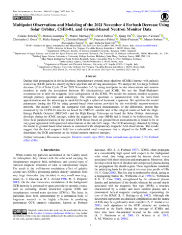 | Title: | Multipoint Observations and Modeling of the 2021 November 4 Forbush Decrease Using Solar Orbiter, CSES-01, and Ground-based Neutron Monitor Data |