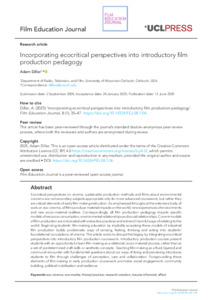 | Title: | Incorporating ecocritical perspectives into introductory film production pedagogy |