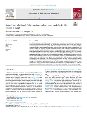 | Title: | Rushed into adulthood: Child marriage and women’s work-family life courses in Egypt |