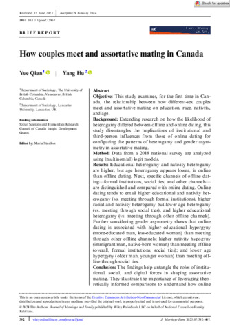 J of Marriage and Family - 2024 - Qian - How couples meet and assortative mating in Canada.pdf - Published Version Download (670kB) | Preview |