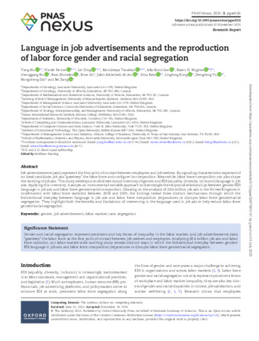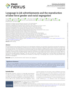Title: | Language in job advertisements and the reproduction of labor force gender and racial segregation |