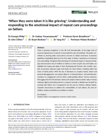 Title: | ‘When they were taken it is like grieving’: Understanding and responding to the emotional impact of repeat care proceedings on fathers |