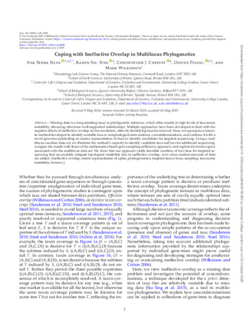 Keywords: | Taxonomic instability, ineffective overlap, phylogenomics, matrix representation of splits, terraces, targeted taxon/locus sampling |